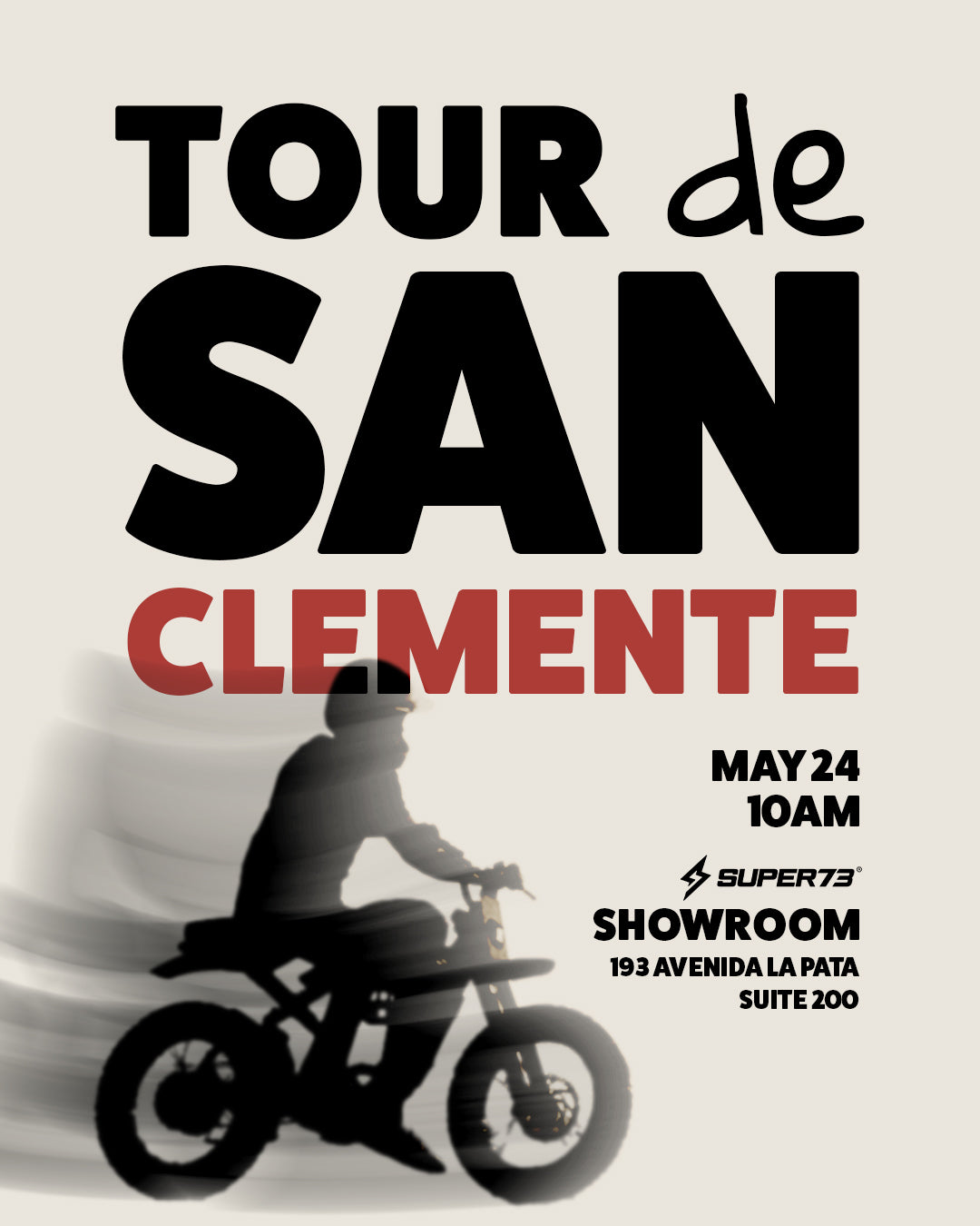 Get ready to ride, San Clemente! Join us on Sat. May 24 at 10 AM for the Tour de San Clemente, kicking off from the SUPER73 Showroom. It’s a chill 10-mile round trip packed with good vibes, high fives, and scenic views. Don’t miss the ride, the community, and the chance to check out the updated showroom! All are welcome, always.